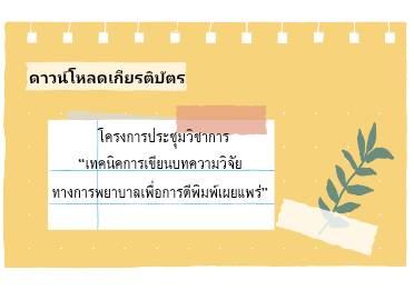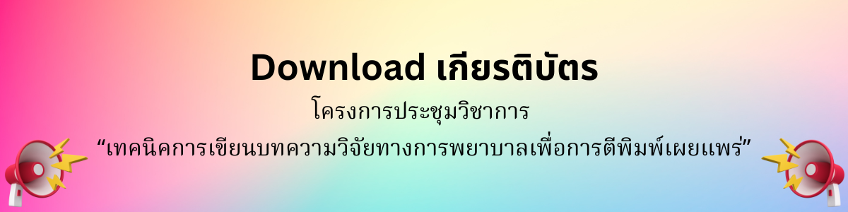 ดาวน์โหลดเกียรติบัตร โครงการประชุมวิชาการ “เทคนิคการเขียนบทความวิจัยทางการพยาบาลเพื่อการตีพิมพ์เผยแพร่”