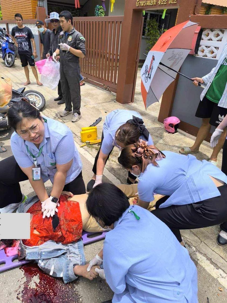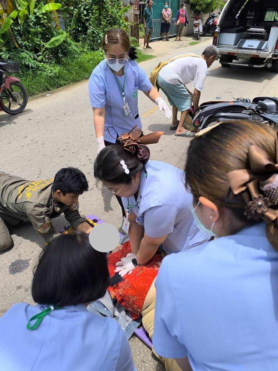 สมาคมศิษย์เก่า วพบ.เชียงใหม่ ขอแสดงความชื่นชม นางสาวธันยพร ผิวคำ ศิษย์เก่าหลักสูตรพยาบาลศาสตรบัณฑิตรุ่นที่ 16 ที่ได้ทำความดีเป็นที่ประจักษ์ โดยในวันที่ 27 พฤษภาคม 2567 เวลาประมาณ 12.06 น. นางสาวธันยพร ผิวคำ หนึ่งในผู้เข้าอบรมหลักสูตรการพยาบาลเฉพาะทางสาขาการพยาบาลผู้ป่วยโรคหัวใจและหลอดเลือด รุ่นที่ 3 วิทยาลัยพยาบาลบรมราชชนนี นครลำปาง ขณะฝึกปฏิบัติงานวิชาวิชาปฏิบัติการพยาบาลหัวใจเฉียบพลันและเรื้อรัง ในชุมชนบ้านหมอสม ต.ชมพู อ.เมือง จ.ลำปาง พบอุบัติเหตุรถมอเตอร์ไซต์ชนเสาไฟฟ้า ผู้อบรมฯ พร้อมอาจารย์ประจำกลุ่มได้ช่วยประเมินให้การพยาบาลเบื้องต้นพบว่าผู้ป่วย มีแผลที่หน้าผากขวา เลือดไหลตลอดเวลา ขาขวาผิดรูป ต่อมาผู้ป่วยหมดสติไม่รู้สึกตัว คลำ ชีพจรไม่ได้ จึงเริ่มทำ CPR ณ ที่เกิดเหตุ พร้อมนำส่งผู้ป่วยไปยังจุดเปลี่ยนถ่ายเพื่อส่งต่อผู้ป่วย ไปรับการรักษาต่อที่ โรงพยาบาลเขลางค์นครราม